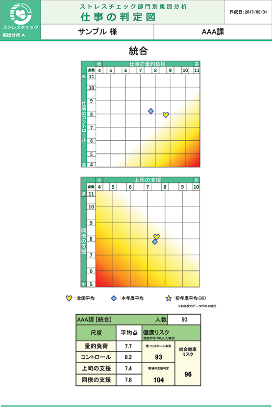 ・集団分析図は企業全体のストレス状態を3種類の評価図より確認