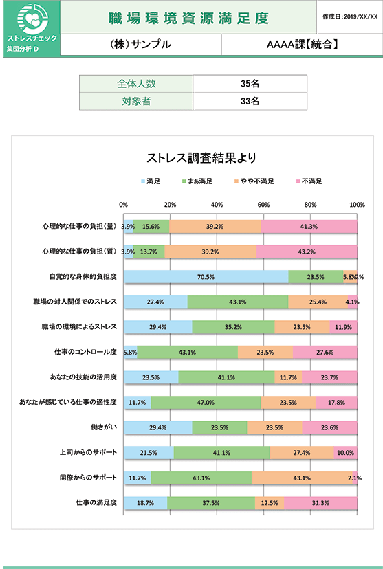 集団分析を行うことで、その職場のストレス状態を把握できます。その結果を検証して課題や良い点を洗い出し、改善計画を策定、職場全体で共有して実施していきます。職場環境の改善を行うことは、労働者の理解・協力がなければ成り立ちません。改善に取り組む姿勢や計画の実施を繰り返しながら取り組んでいきましょう。