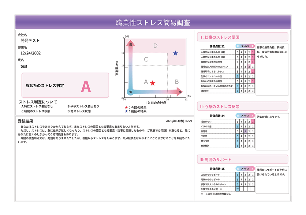 ・ストレスプロフィールは受検者個人のストレス状態の評価を確認